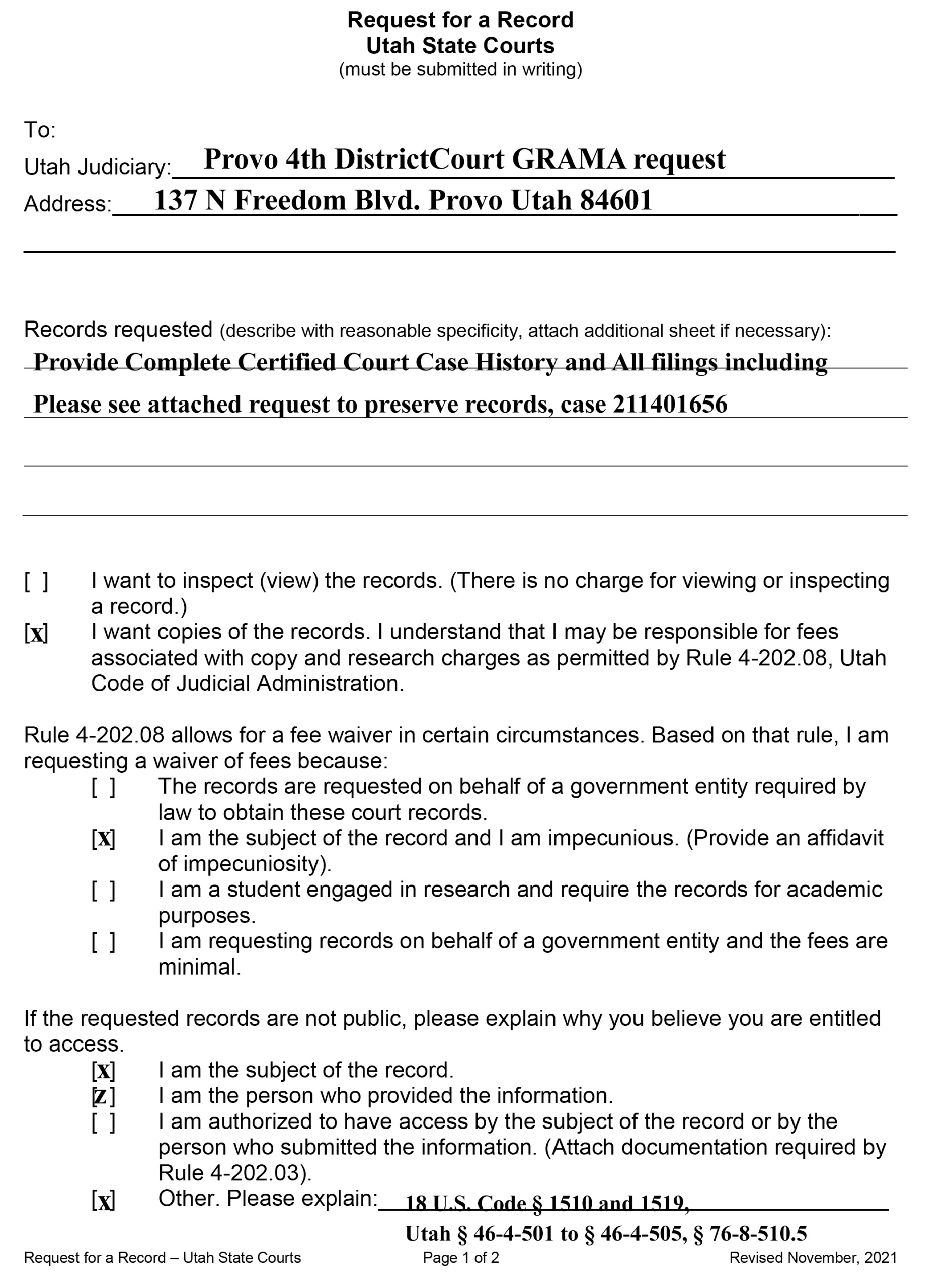 Nearly bankrupt, nearly broken, and having fought to clear his name to get a job – due to the wrongful prosecution and lingering effects of false records, Allen peacefully entered the Utah County Fourth District Courthouse on June 25, 2025, simply to obtain certified records for potential federal civil-rights claims in long-dismissed cases. He waited politely, asked a clerk a question, and made an audio-only voice recording of the interaction on his phone (legal under Utah’s one-party consent law)—he did not record images or video, despite the subsequent official accusation—and then left.