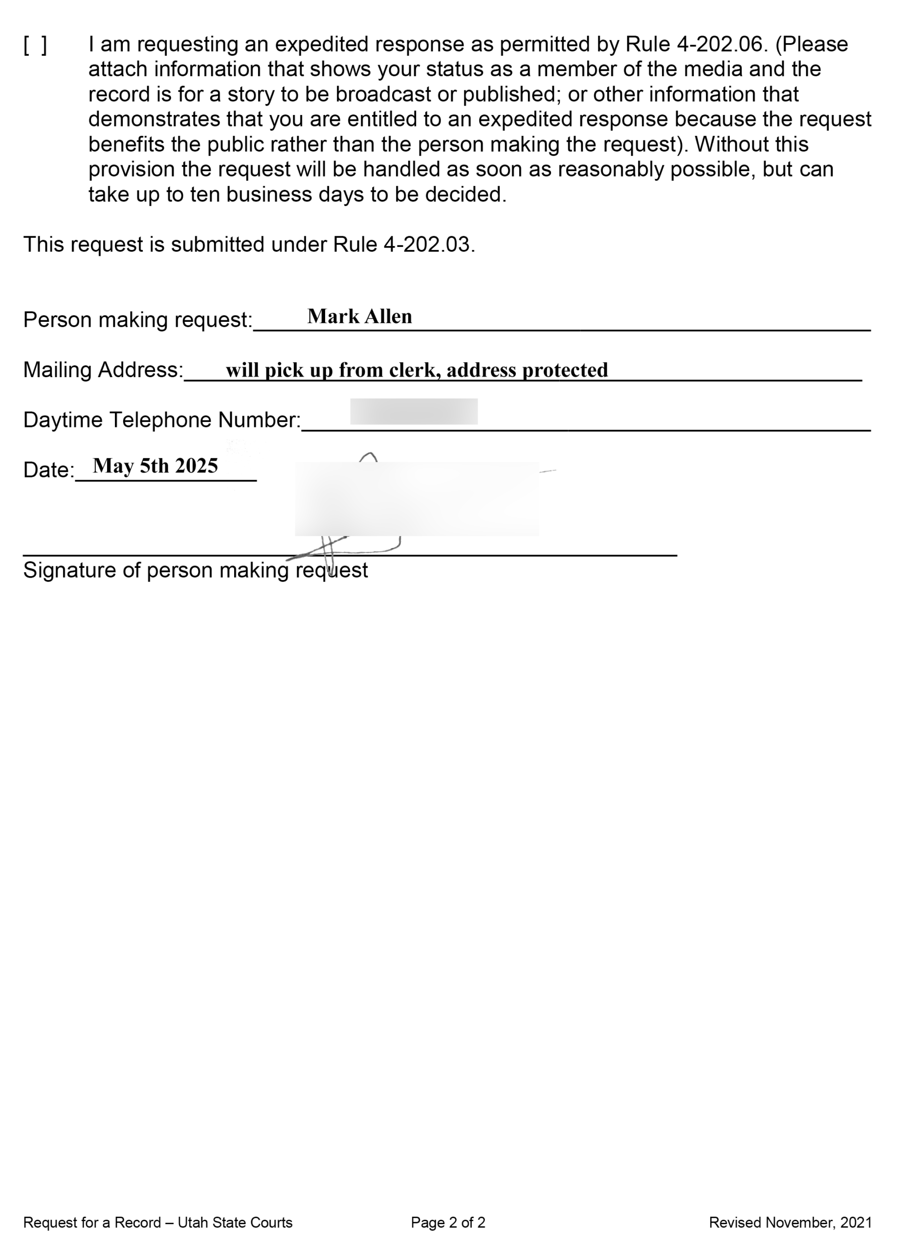 Role Detail: Responded to GRAMA request from Allen.