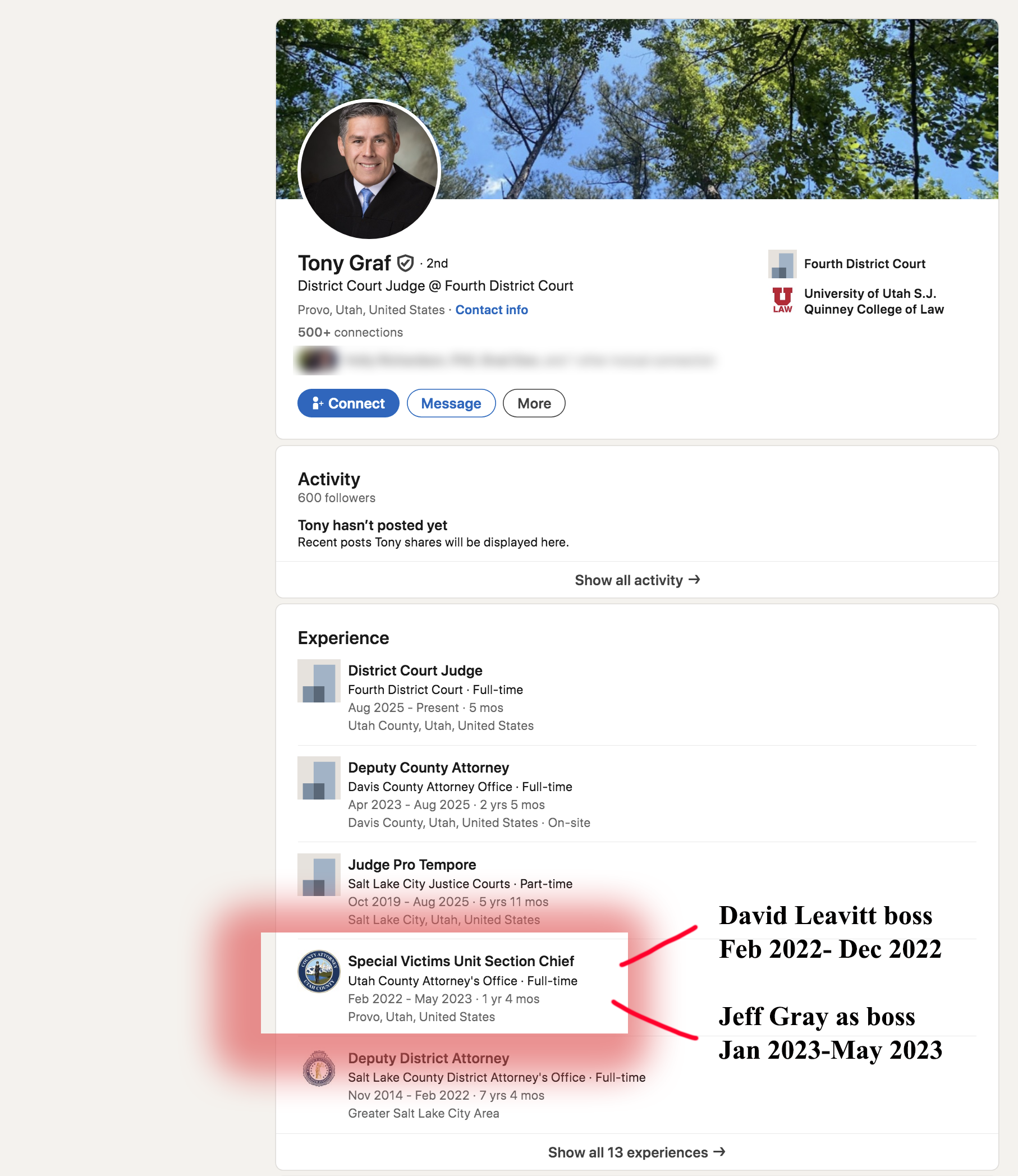 Tony Graf spent years as a deputy under David Leavitt—the same David Leavitt publicly accused (never charged) in 2022 of ties to an alleged ritualistic child sex-abuse ring alongside therapist David Hamblin. Those Hamblin charges were dismissed with prejudice in March 2025 after prosecutors withheld victim journals and the court found irreparable conflicts stemming from Leavitt’s tenure.