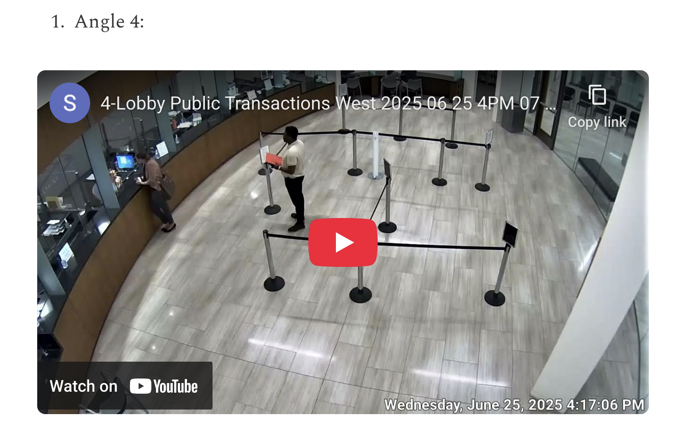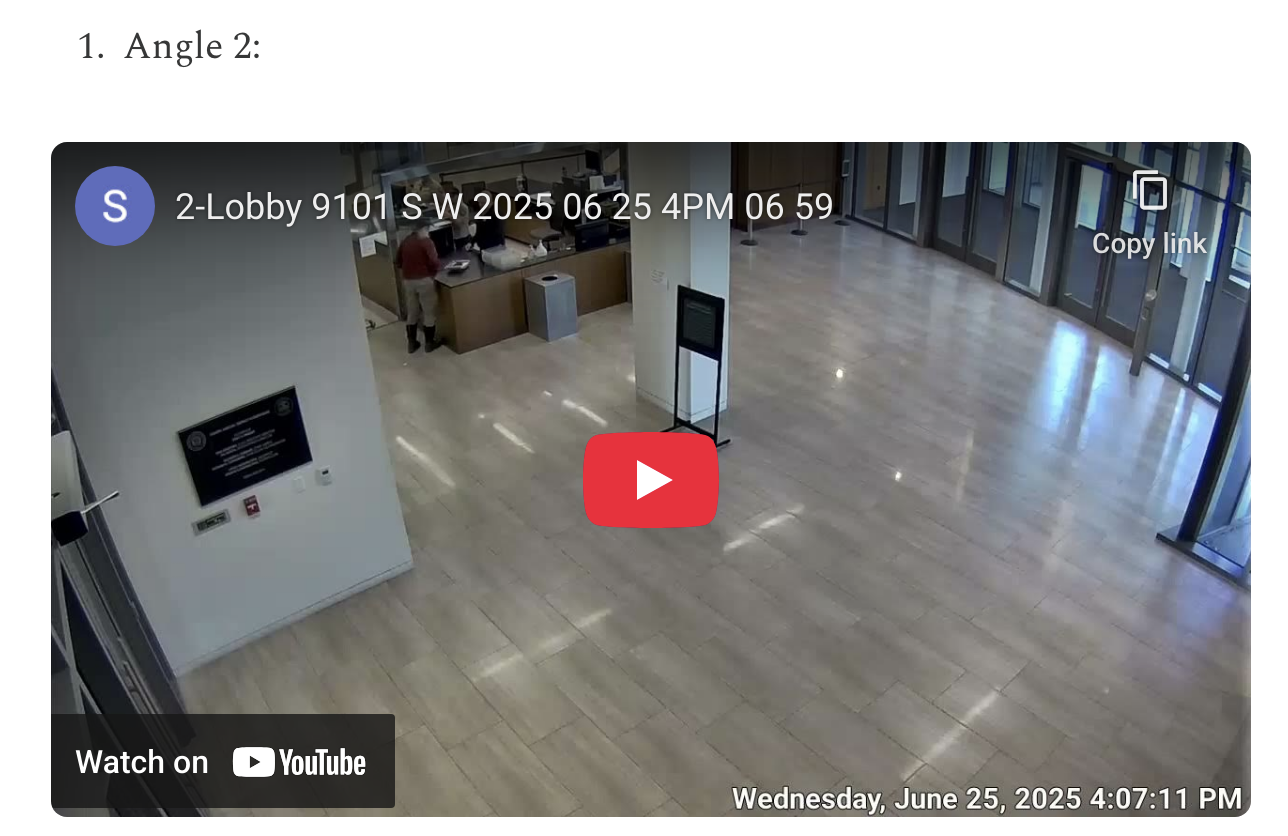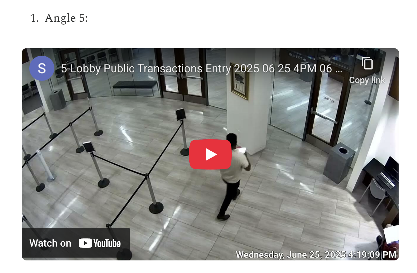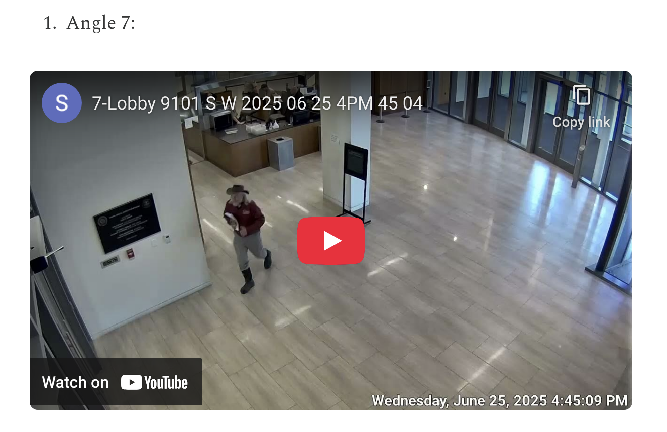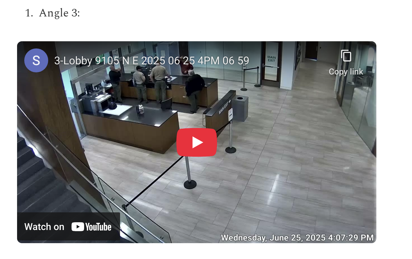All available camera angles have been collected for public review: Playlist 40 minutes chronological order. Ironically the AOC security footage impeaches Security Director for the State of Utah Courts.